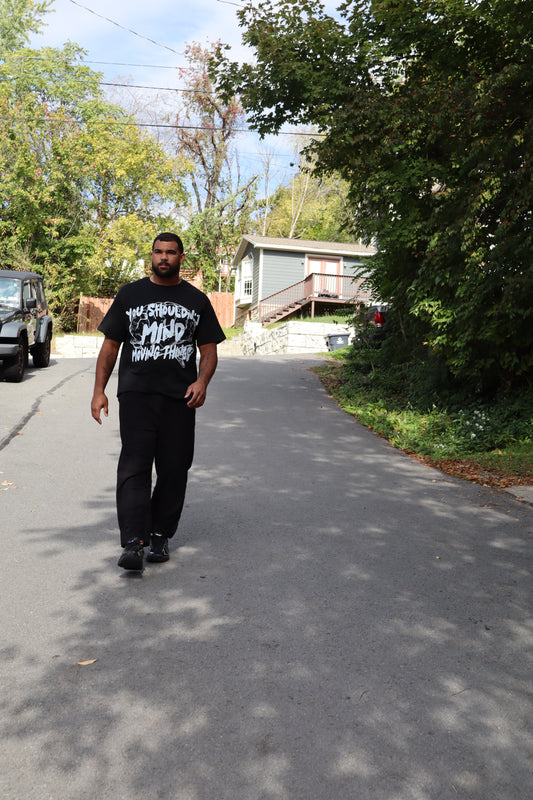 YOU SHOULDNT MIND MOVING THINGS OUT THE WAY BLACK TSHIRT